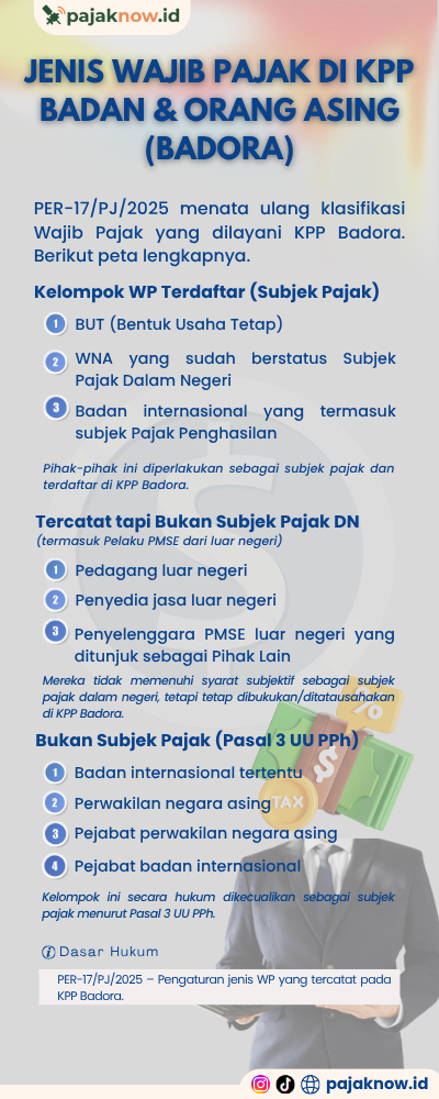 Jenis Wajib Pajak di KPP Badora: Badan & Orang Asing menurut PER-17/PJ/2025